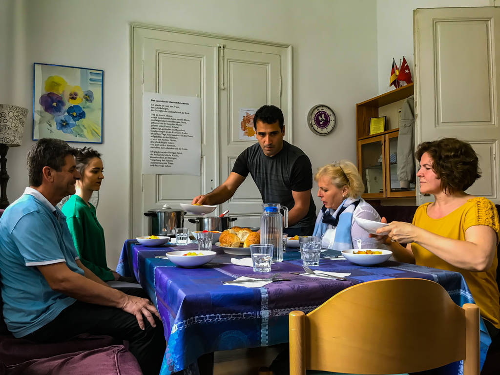 Onuk Abdul-Cebbar, der Gärtner Adnan und die Putzfrau Refiye mit. Ab und zu kommen auch Praktikanten: Im September 2018 ist die Theologie-Studentin Judith